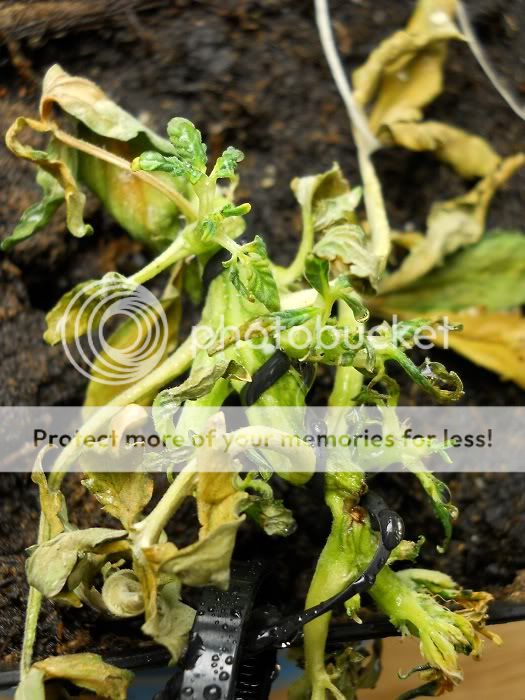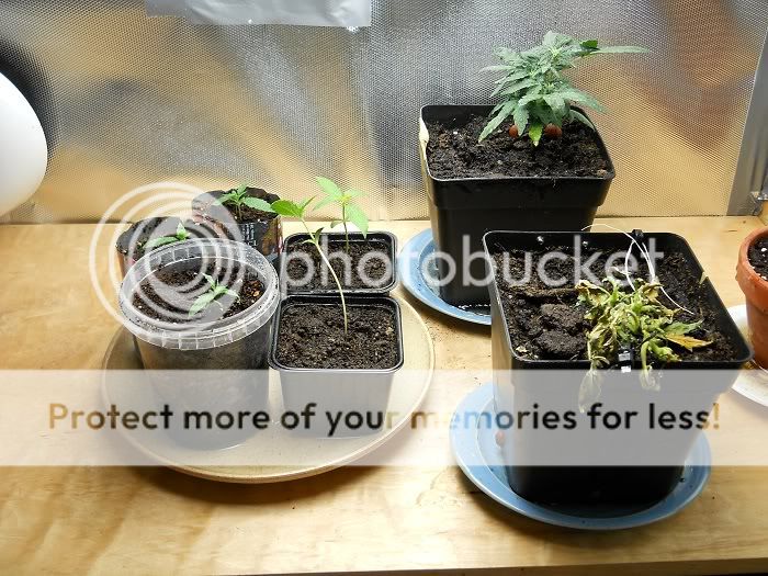 Den sorgsna fräcka fröken: Jag har än hopp för denna stackare, löven är torra, men skotten och stammen är fortfarande vid liv. Jag hoppas detta inte stressar plantan för mycket för att bli hermis.