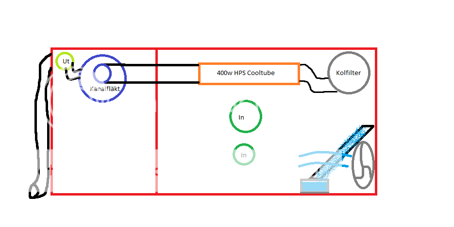 Det är en 400w HPS med tillhörande cooltube, kolfilter och kanalfläkt.Nu är det så att jag kan inte få ner temperaturen mer än 33 grader, vilket är alldeles för högt.